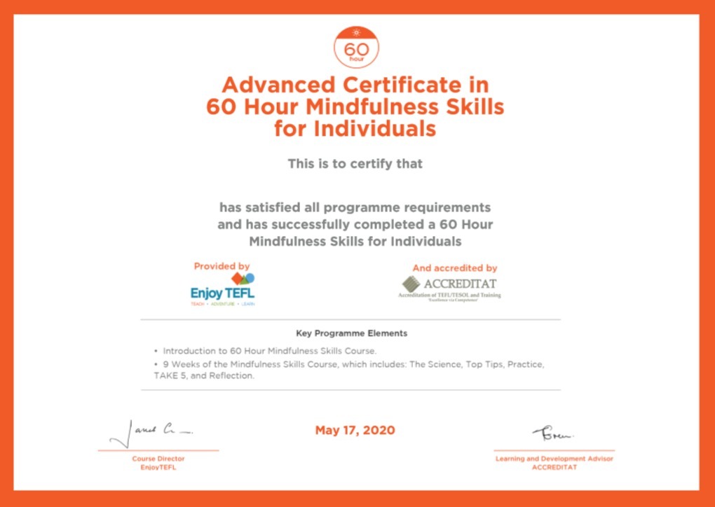 In order to keep productive, I’ve been trying to get as much of my course work done whilst I have a good chance to. When I bought my TEFL course, it came with 2 extra courses for free. Mindfulness for Individuals and Mindfulness for Children. These two extra courses help you learn how to incorporate mindfulness into teaching and how it can make learning easier, less stressful and a lot more fun!^^