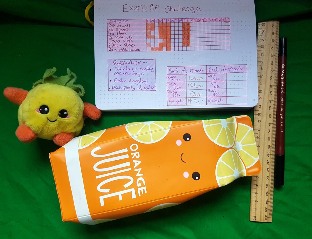 For those who haven’t been following my Bullet Journal Posts, here is a picture of my workout routine for this month. I like to change it up each month so I don’t get bored^^