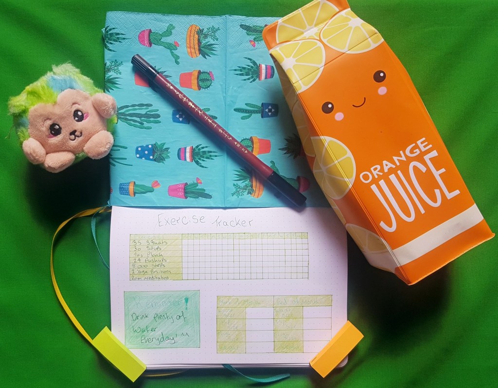 Last month I added in this page instead of having my exercises in my habit tracker and so far its seemed to of worked a lot better for me. I find it a lot easier to track what exercises I need to do and when. I also like the idea of noting my before and after numbers so that I can track my progress better! I’m increasing the number of reps for each exercise by a small amount each month too!^^