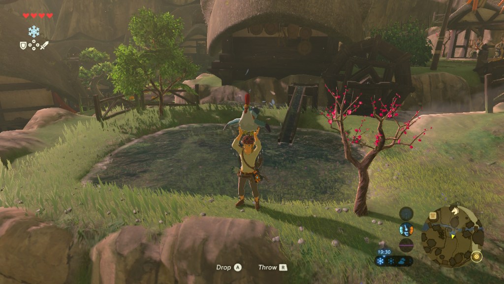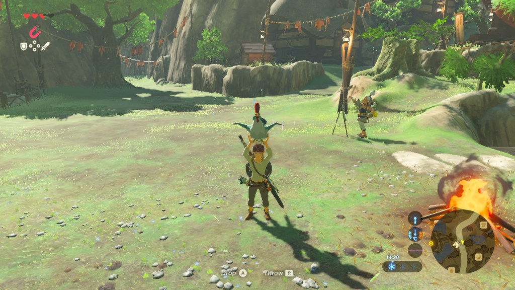 As I ended my small game sesh to return to my uni work, the last thing I did was catch chickens! They’d escaped their farm and their owner Cado was in quite a panic, so I did the same as any other Link would do and ran around searching for these loose chickens. Some got into some really peculiar places, it took me a while to find the last one – he somehow found his way onto a rooftop…