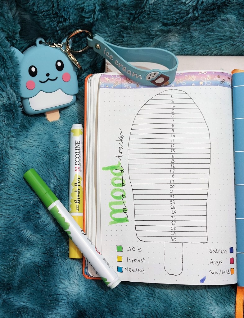 I chose an obvious Ice lolly design for this month’s mood tracker and since I’ve realised I struggle with recognising or putting a name to certain emotions, I used an emotion wheel to base my options off of.
