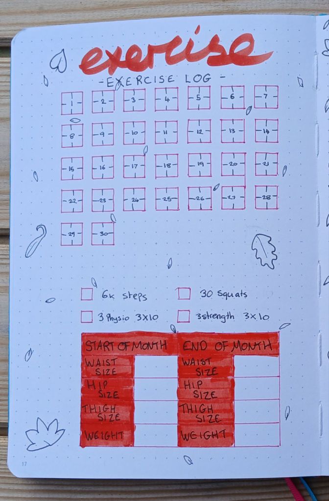 I personalised my exercise tracker a little more for next month by using more specific goals. I’m hoping this will motivate and encourage me to slowly create more of a specified routine.
