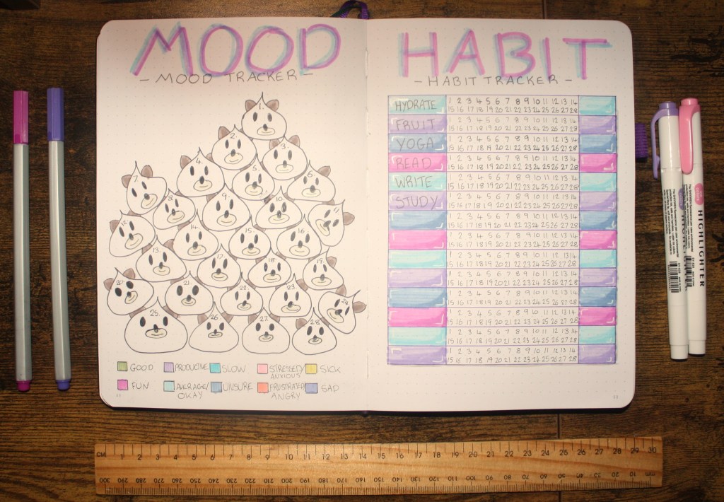 I chose to stay with a similar colour design as the calendar for my habit tracker. I usually try to pick a colour for each habit – a colour I associate with each habit perhaps – but then I get caught up, losing the correct colours and never filling the boxes in… So hopefully less is more this time!