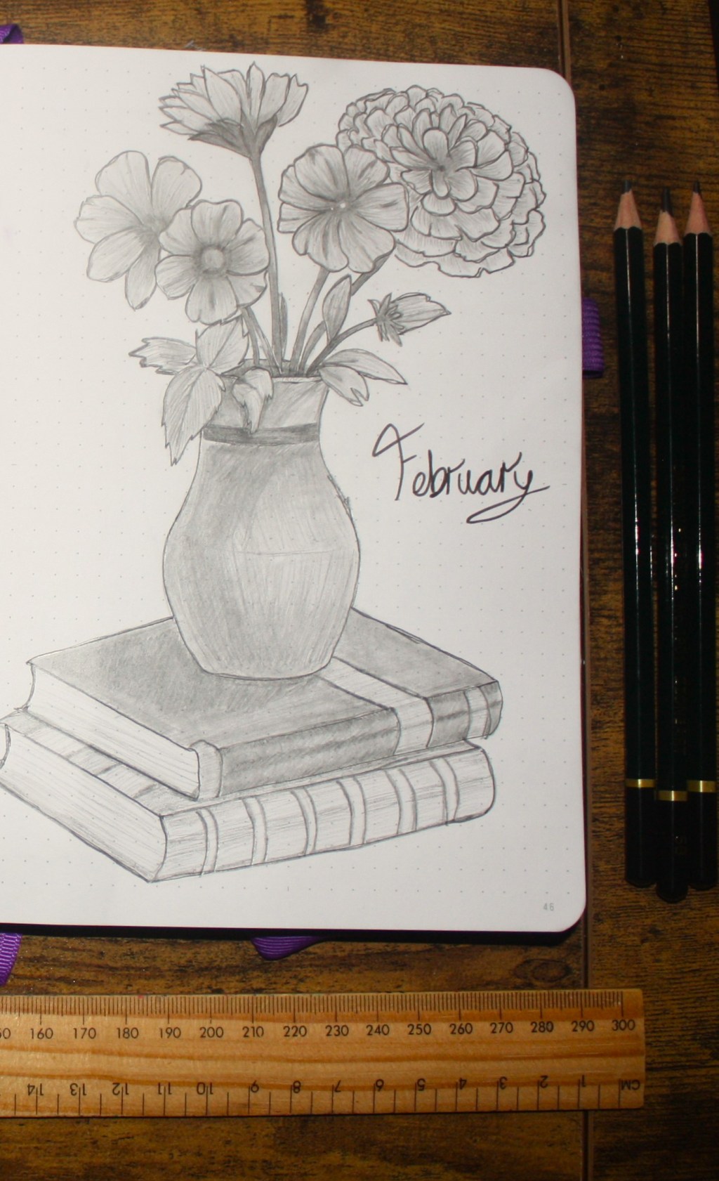 I know, the flowers definitely aren’t HyperDimension related, but after last month’s snowman, I figured this year’s title page theme could be inanimate object pencil drawings in which I can practise some shading techniques with! This was my first time drawing a vase of flowers, nevermind shading them – So I’m quite satisfied with how it turned out.^^