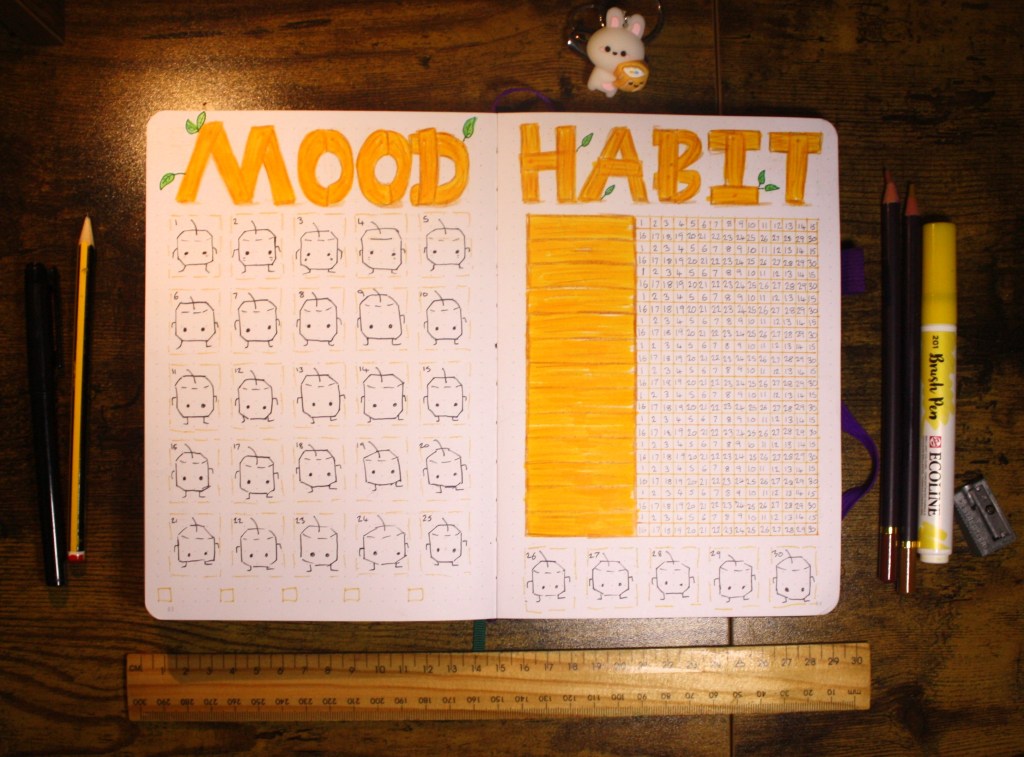 I miscalculated a bit this month. I’m not sure how I convinced myself I had enough spaces until the very end, but it wasn’t until I went to number them later on that I realised I was missing 5 🫠 So, as you can see here, I had to use the extra space on my habit tracker to finish it off…